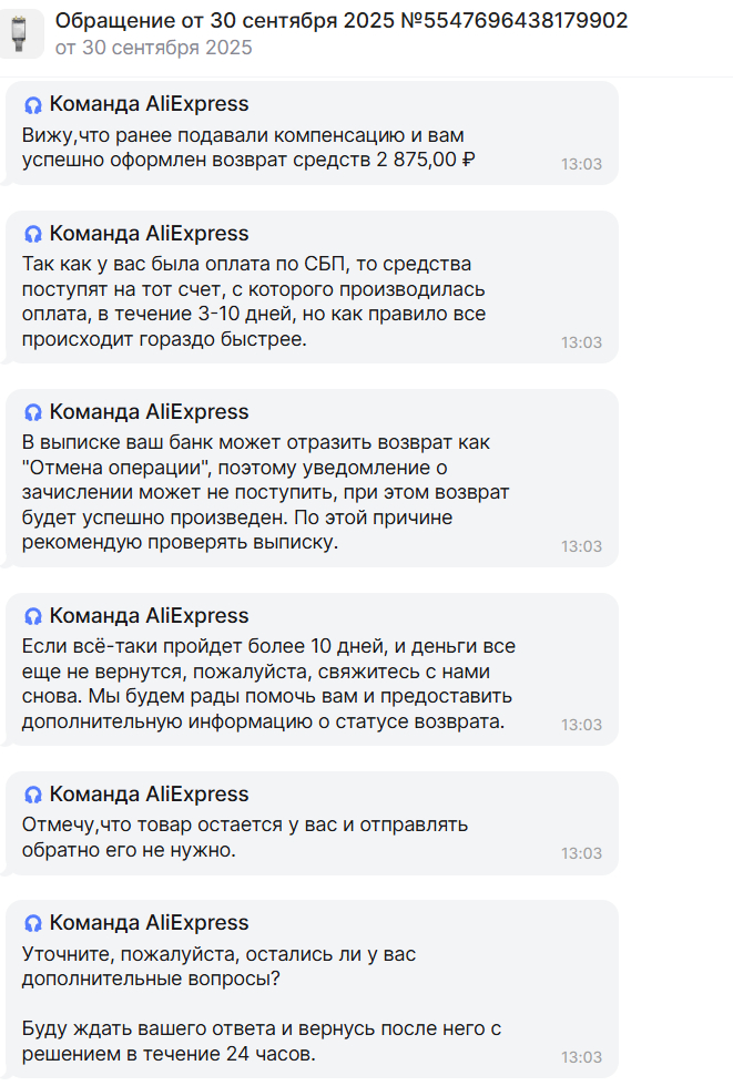 На следующий день звонок к ним, общение на ангийско-китайском с объяснениями. После еще переписка и ответ: