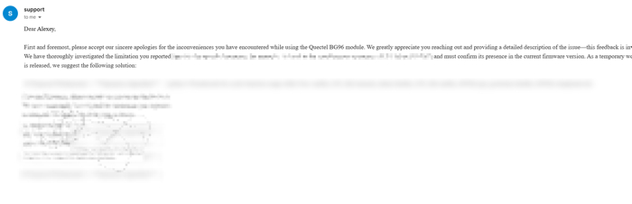 После этого я стал умнее и сперва написал письмо напрямую производителю. Выбрал продукцию SIMCom.