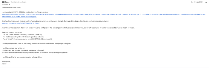Понервничал, подумал и написал письмо в поддержку QUECTEL (помогите глупому, у меня ничего не получается как я ни старался):