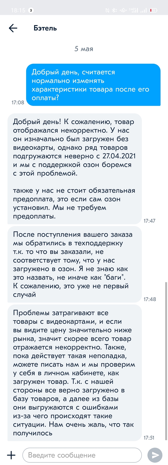 Поведение больше похоже на барыгу с алишки, чем на крупный маркетплейс