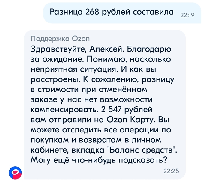 Понимаю, что тут просто ответит бот(@Ozon), но все же интересно, покупателю вернули деньги за потерю или отказывают в возврате, якобы всё честно доставили?)