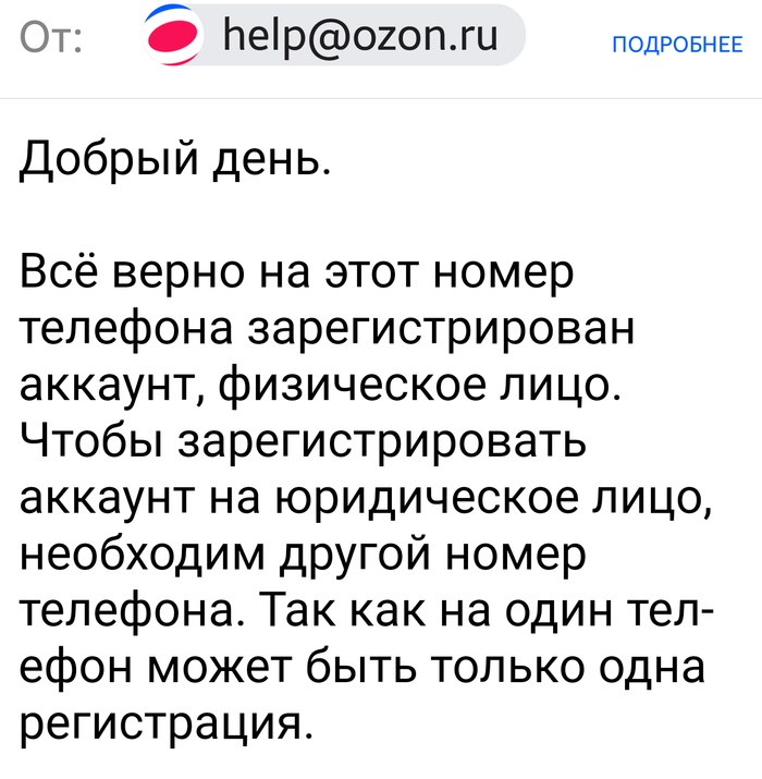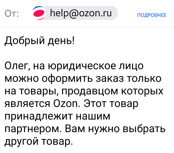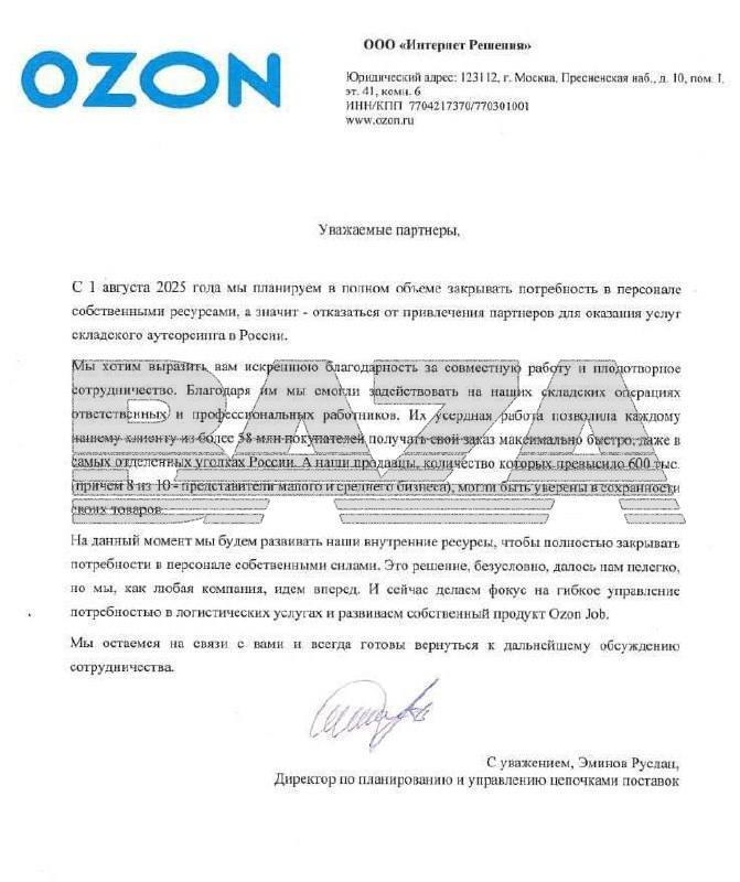 Также хочу зацитировать сообщение из официального телеграмма Озон: