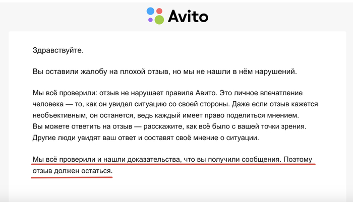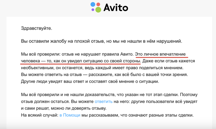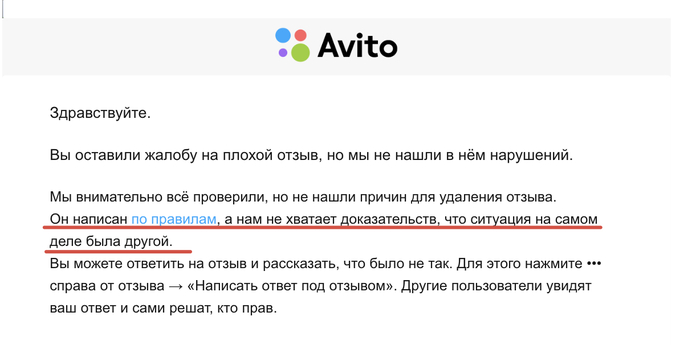 Впрочем, ты всегда можешь предложить человеку, который оставил отзыв, деньги или скидку — по совету Авито. И, конечно, никто не мешает вам написать ответ под отзывом и дать всем самостоятельно составить свое мнение.