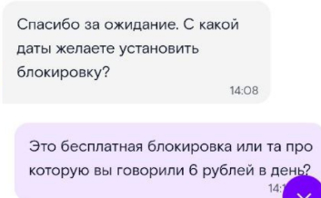 Сотрудник подтвердил, что блокировка будет бесплатной, тогда я попросил сделать её в тот же день.