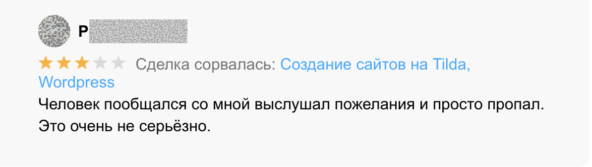 А теперь внимание: В моем случае мы всего лишь обменялись парой фраз и контактом. Ни сроков, ни условий, ни суммы — ничего этого не было. А значит отзыв никак не имел право на существование.