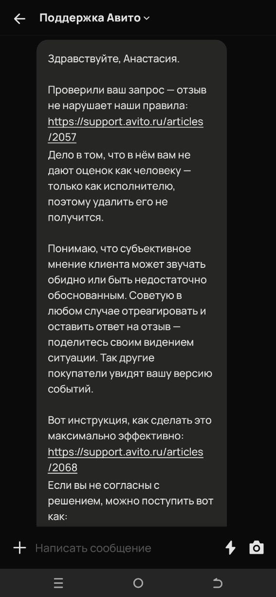 А пока вы думаете, как собрать исчерпывающие доказательства, отзыв останется опубликованным и доступным для всех. Поддержка по сути переносит на вас невыполнимую задачу: доказать то, чего не было, и методично игнорирует все предоставленные аргументы.