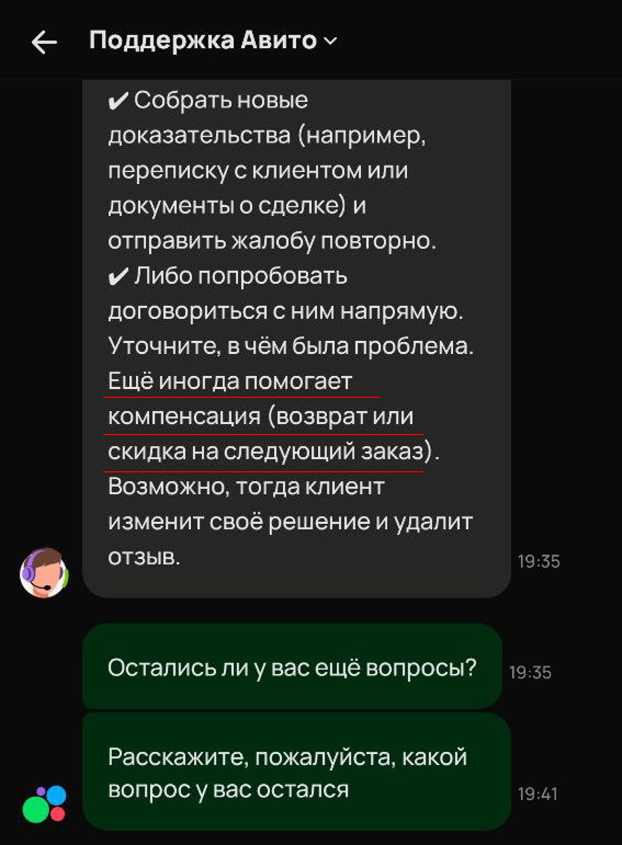 Перечитав переписку, у меня тут же возник закономерный вопрос: Неужели Авито этот диалог считает высказыванием хоть каких-то пожеланий?