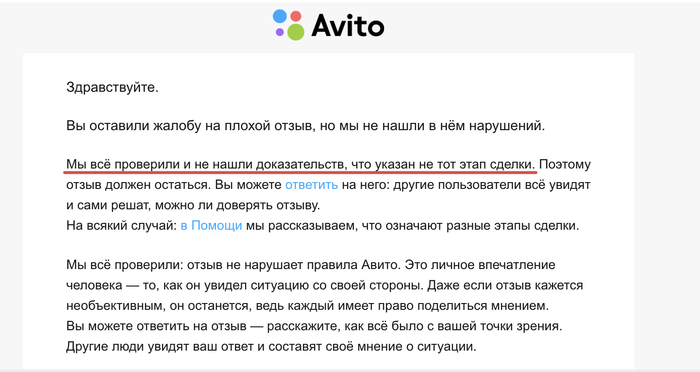 Когда я получила, четкие определения, что входит в понятие сделки, я воодушевилась. Вот же, есть четкие критерии, по которым становится точно понятно, что отзыв несправедливый. Он, как минимум, должен быть без рейтинга, а как максимум удален за прямое нарушение правил и искажение ситуации. Ссылаясь на это, я написала свое последнее обжалование.