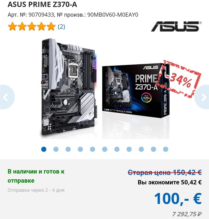 Само собой к такому "монстру" полагается достойная материнская плата на Z370 со скидкой 34%