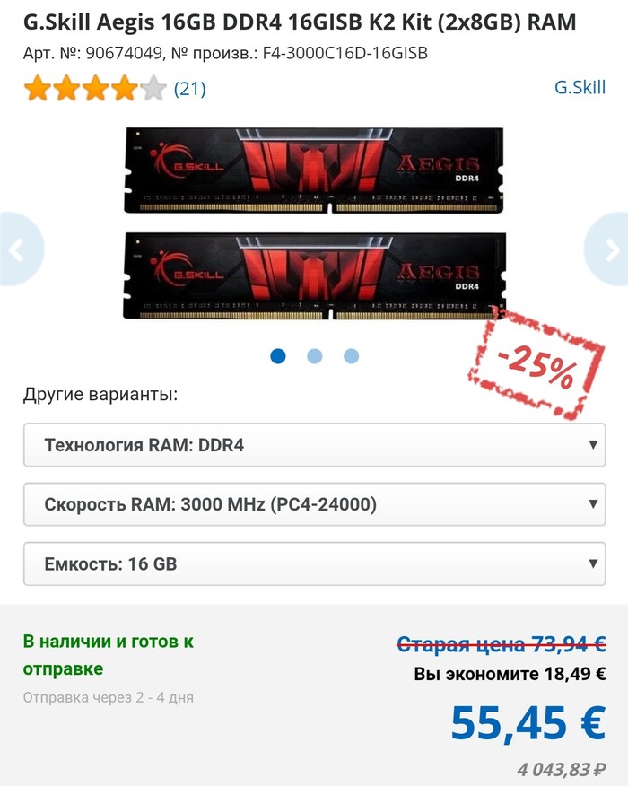 -16 GB DDR4 3000MHz CL16(думаю докупить до 32)