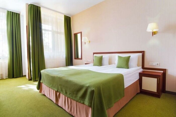 Отель Альтхоф относится к группе Мини-отелей в Калининграде и предлагает 11 комфортных номеров по разумной средней цене. Средняя стоимость проживания — 2950 руб за ночь. Расстояние до центра города составляет 4,1 км, что позволяет совмещать прогулки по историческому центру с спокойным отдыхом. Заезд начинается с 14:00, выезд — до 12:00, а круглосуточная стойка регистрации обеспечивает гибкость прибытия. В номерах есть все необходимое: туалетные принадлежности, фен, электрочайник, холодильник и телевизор. В общей зоне гостям доступны микроволновка, гладильная доска, утюг и посуда.