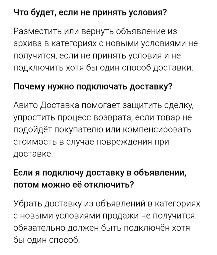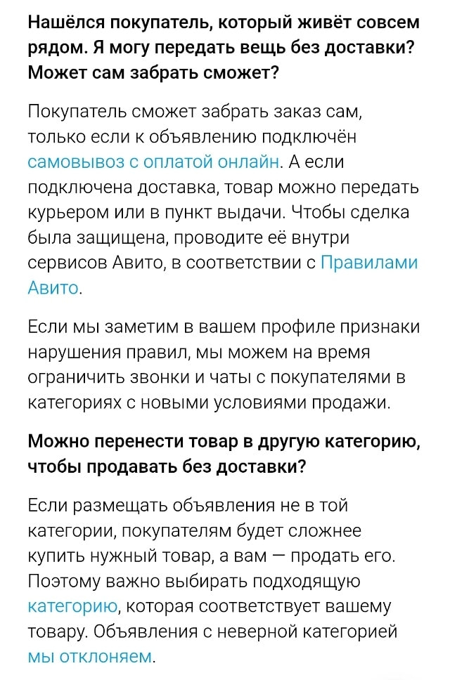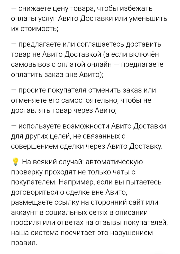 - нельзя договориться через личные сообщения на авито - отправкой через сторонние службы доставки, в обход сайта,