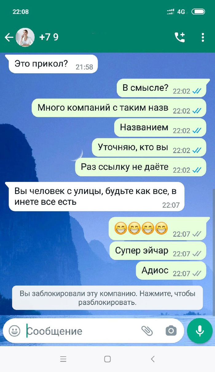 После этого все мои сообщения просто игнорировались. А переписка с сайта знакомств пропала.