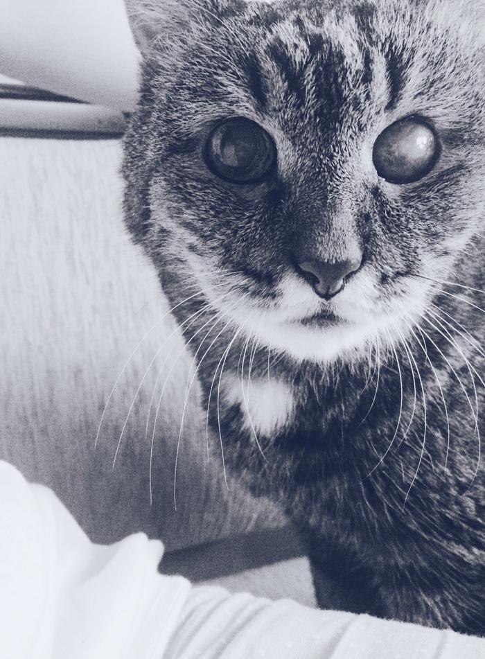 Однако частичная слепота не мешала ему радоваться жизни. Он сохранял активность и хорошее настроение, разве что стал громко и душераздирающе орать по ночам. И всё больше тянулся к людям. О, как же чудесно, когда кот, множество раз в прошлом раздиравший тебе руки, теперь сворачивается урчащим клубком на коленях.