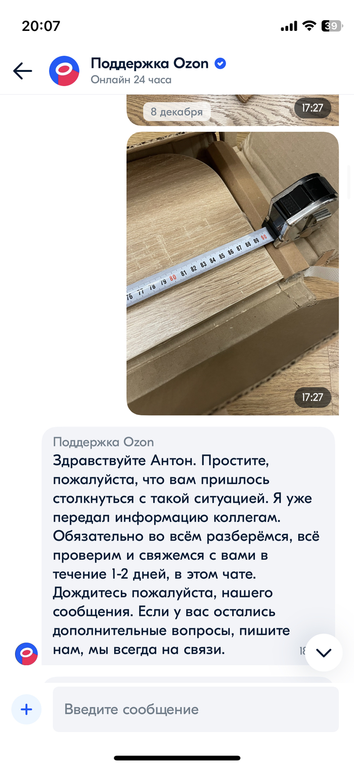 На что, я им указываю, что доставка должна была осуществляться силами озона, а также направляю скриншот из переписки выше. И о чудо: