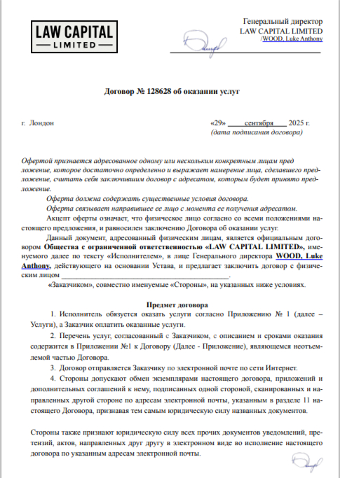 Потом подключилась «юрист» Виктория Гольцберг. Провела созвон, прислала договор. Мы подписали.