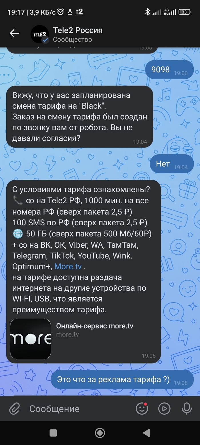 Ни какой смены тарифа я не заказывал, мне оно нафиг не нужно, ведь я на своем тарифе даже интернет трафик потратить не могу.