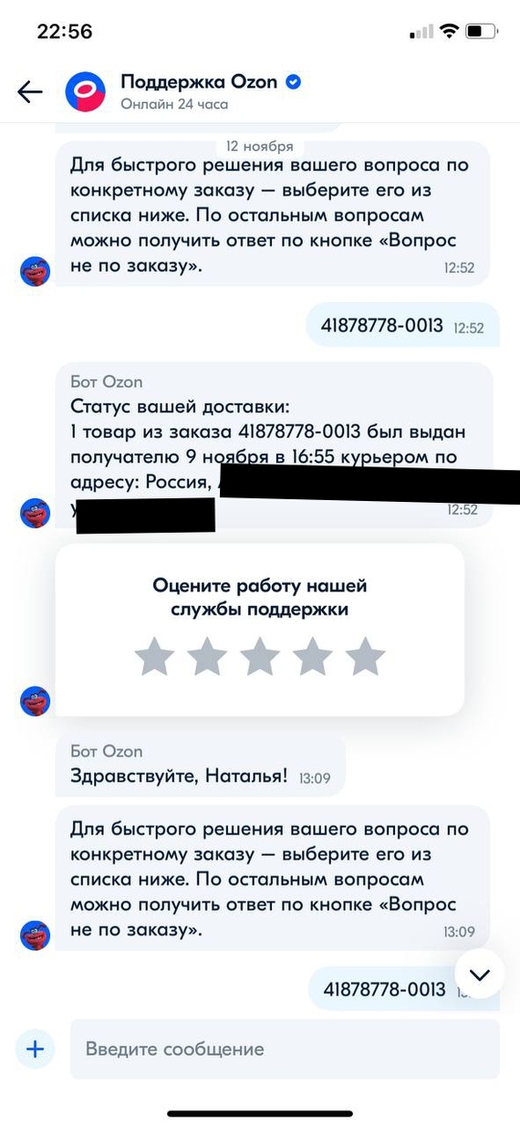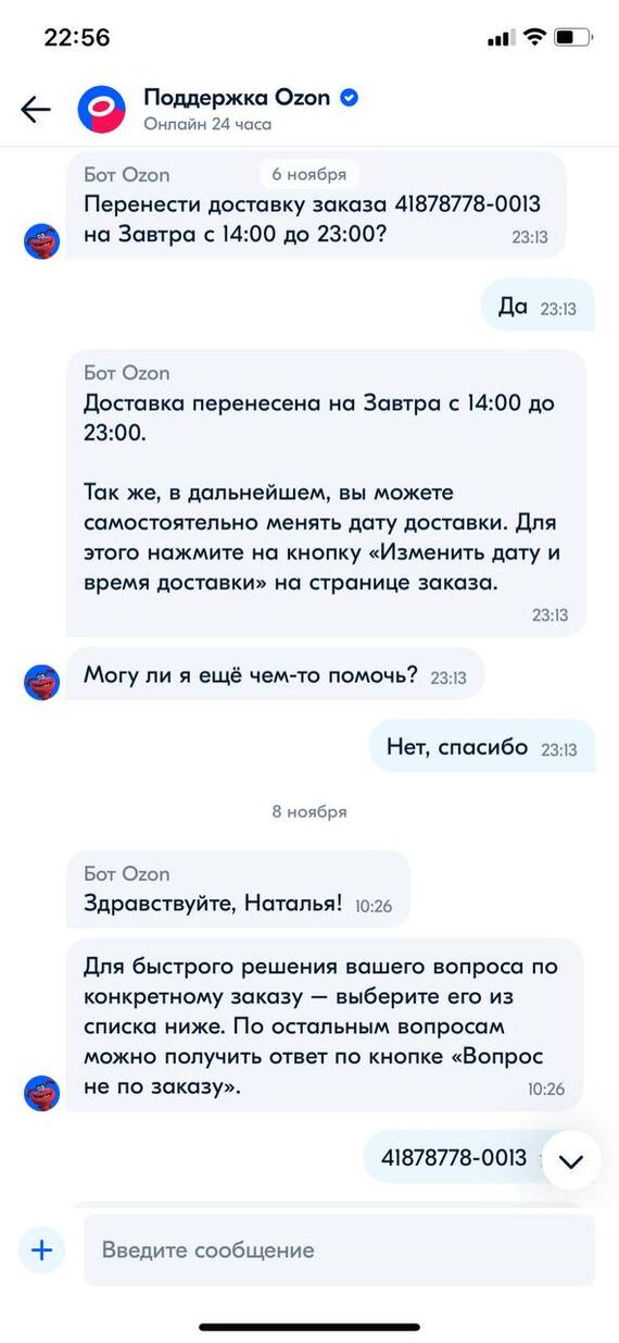 "Заказ был выдан 9-го, оцените, пожалуйста, товар" На данный момент круглосуточная поддержка @Ozon, ради оперативности которой закрыли операторов горячей линии, молчит ¯\_(ツ)_/¯ Бот, тем временем, не может определиться извиняться за то, что доставку перенесли или поздравить с тем, что товар доставлен. Выводы делайте сами.