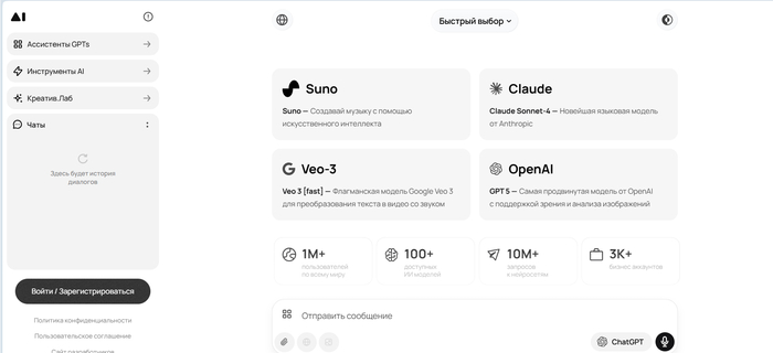 Сервис стал популярен среди тех, кто ищет баланс между бесплатными возможностями и продвинутым функционалом. Бесплатная версия даёт базовый доступ к моделям, а подписка открывает мощные платные нейросети, подключает память, возможность создания собственных промтов и сохранение истории общения. Цены на подписки варьируются от 600 до 900 рублей в месяц, в зависимости от количества активных чатов и скорости отклика.