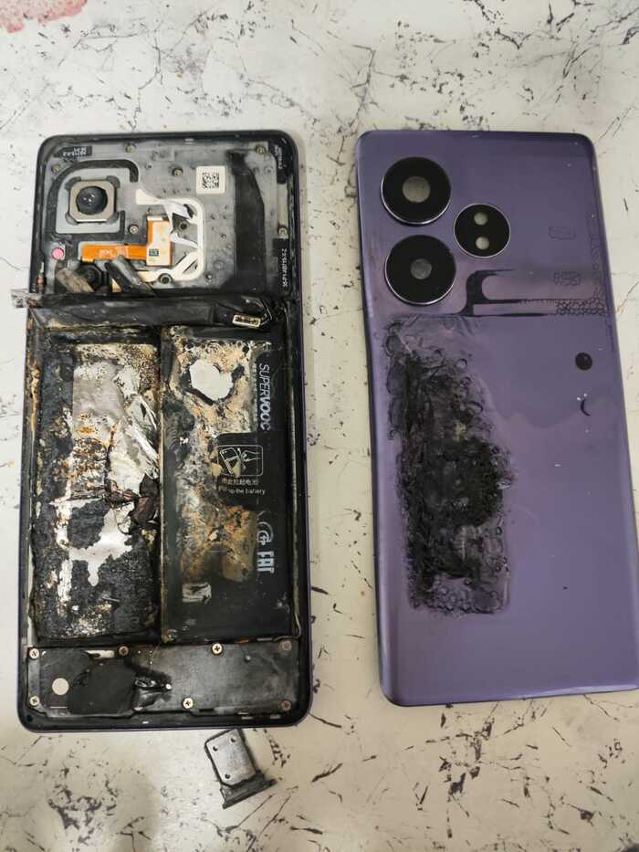 Ситуация такая, в июле месяце у китайского продавца на Озон был заказ телефон Realme Gt neo 6. Изначально к товару претензий никаких не было, до вчерашнего вечера, когда лёжа на полу около кровати ( не подключён к зарядке) начал шипеть дымиться и в итоге вспыхнул.