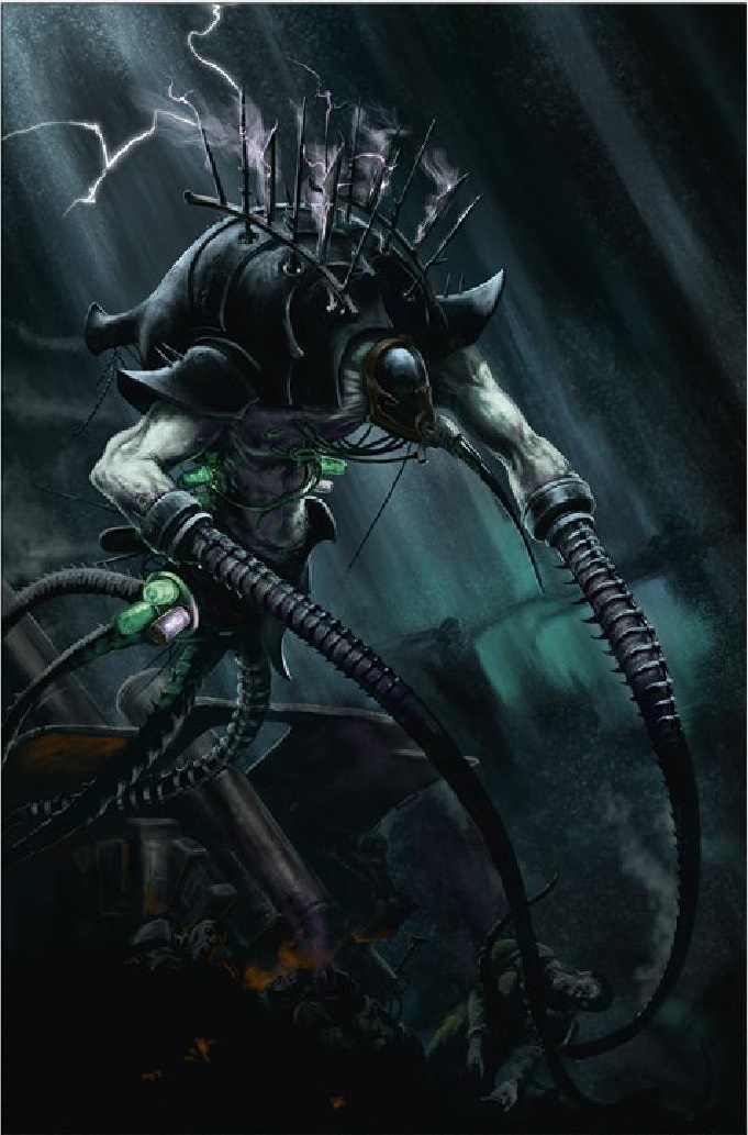 Оно спустилось с небес, жужжа и щёлкая, ощетинившись множеством антенн и сверкая панцирем цвета засохшей крови. В то время мы были сосредоточены на более насущных проблемах — отражении волн комморитов, что были подобны урагану клинков. Наши болтеры стреляли яростно. Но затем мои братья стали падать замертво. Брат‑капитан Алкон стоял и ничего не делал. Я сорвал с него шлем и обнаружил под ним не лицо, а сморщенный череп. В ту же секунду ксеносы удвоили свой натиск. - Эпистолярий Тул из «Серебряных черепов», «Резня в Ирии».
