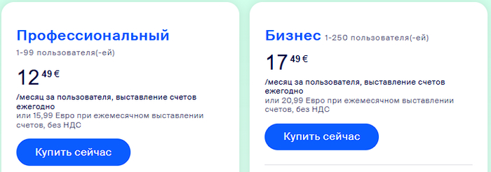 Бизнес тариф (Business): примерно 1 700 ₽ в месяц за пользователя.