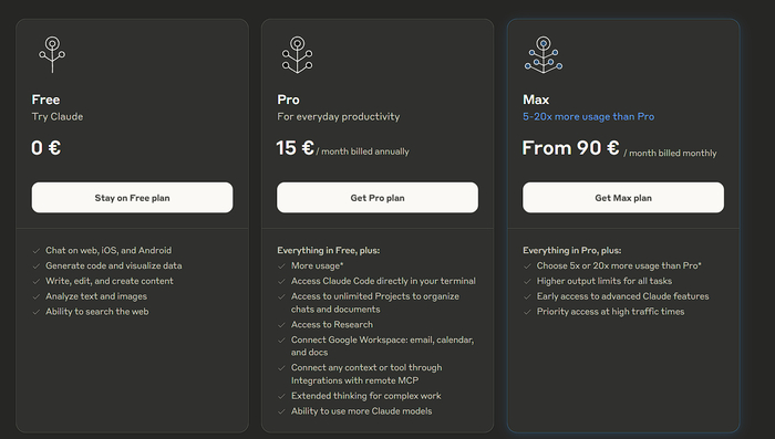Max — от 90 € в месяц ≈ 8 100 ₽/мес