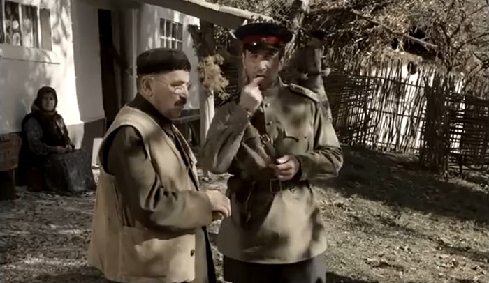 Злобный орк из НКВД тем временем разговаривает с председателем. Дескать вся страна воюет, а у тебя одни бандитские рожи, может они своих овец и лошадей в горах прячут, а председатель их покрывает, а так как с советской властью шутки плохи, то даже он не сможет его защитить.