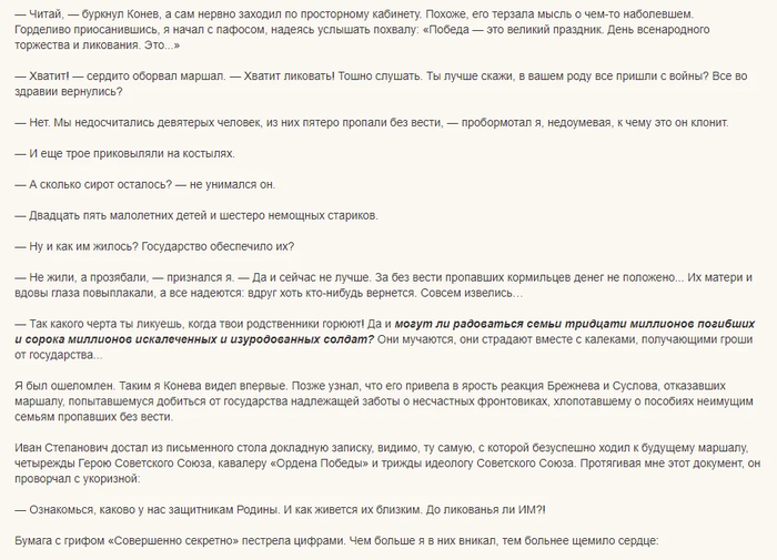 Равным образом нет имени Кашурко среди всех многочисленных академиков. Это настолько очевидно, что можно было такую мелочь и не упоминать. Ладно, пусть он не генерал-адмирал-академик. Но все же: текст с откровениями Конева был? Текст был. И где же он был опубликован?