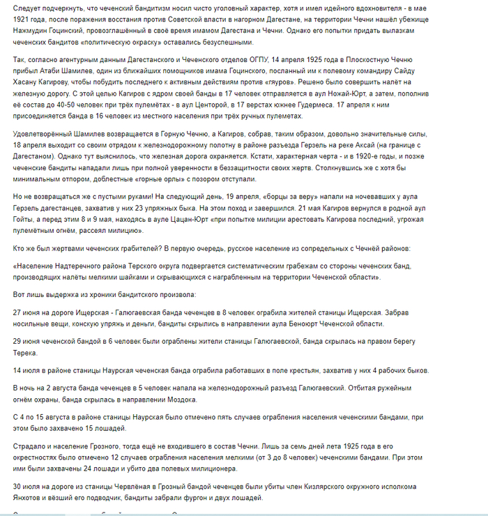 Хотя понятно почему. А если вспомнить как в самой Чечне совсем недавно происходили этнические чистки, в ходе которых уничтожалось в том числе русское население, а так же многочисленные теракты на территории России с гибелью гражданского населения, то невинная жертва вообще не вырисовывается. Справедливости ради замечу, что жертвами чеченских националистов становились и сами чеченцы, которых уничтожали за "связь с оккупантами", как тогда русских в Чечне называли.