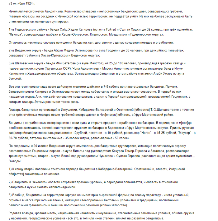 «Совершенно секретно. Наркому внутренних дел СССР тов. Л.П.Берия. Только для Ваших глаз. В виду не транспортабельности и с целью неукоснительного выполнения в срок операции «Горы», вынужден был ликвидировать более 700 жителей в местечке Хайбах. Полковник Гвишиани».