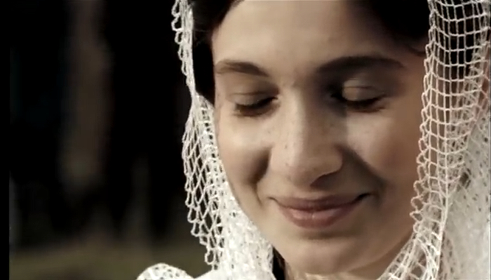 Затем идет копирование начальной сцены из фильма "Спасти рядового Района", камера медленно надвигается на лицо бабушки, потом бац, вместо старой женщины, стоит молодая девушка.