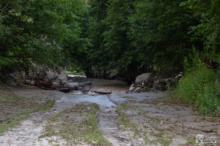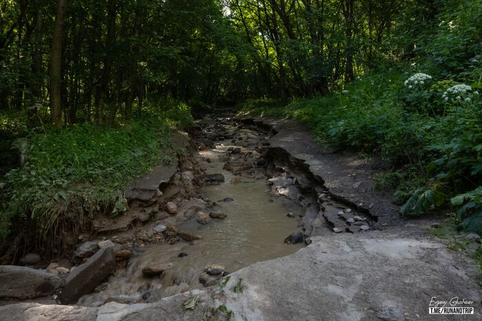 Как оказалось внизу дорогу вообще смыло дождями, которые прошли мимо меня. Где была дорога теперь река и её пришлось обходить по скалам, хотя можно было бы и запрыгнуть в кроксы и пройтись в них. В одном месте так и пришлось делать, оно сразу было обозначено на карте как брод. После дождей брод стал ещё более бурным. В этот раз я даже подснял его прохождение на видео, для потомком. Всё это бродил с заживающей мозолью. Местами пришлось менять перевязки, так как от воды повязки ослабевали и спадали.
