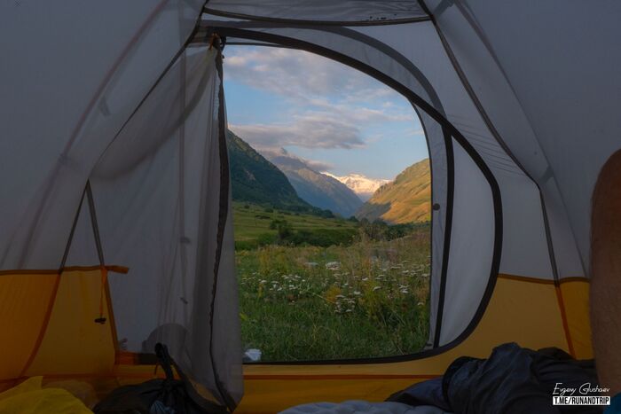 Заночевал я у реки. В темноте кинул палатку, благо опыт уже хороший. Завалился отдыхать и кушать купленные фрукты. А по пути успел съесть пару вкусных мороженных.