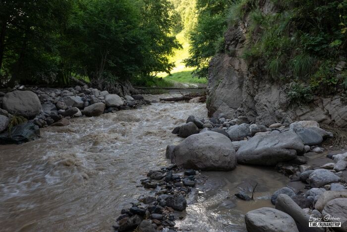 Оказалось, что дорога на перевал перекрыта. По крайней мере перекрыта для машин. На перевале ручьями дорогу размыло так, что никакая машина не проедет. В этом секрет отсутствия машин. Хорошие видимо дожди прошли в этих местах до моего появления. Пешком же перевал пройти не составило большого труда. Вода есть, небольшой дождь и туман – почти не преграда, а за перевалом меня ждут отдых в поселке Безенги, где есть магазины со вкусностями. Если, конечно, я успею до закрытия.