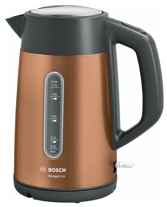 Чайник Bosch TWK 4P439 — это стильный и мощный прибор, который станет незаменимым элементом вашей кухни. Его корпус выполнен из прочного металла с бронзовым покрытием, что придает устройству элегантный и современный вид. Чайник имеет объем 1,7 литра, что идеально подходит для приготовления напитков на большую семью или гостей. Мощность 2400 Вт позволяет быстро довести воду до кипения, экономя время и обеспечивая удобство в использовании.