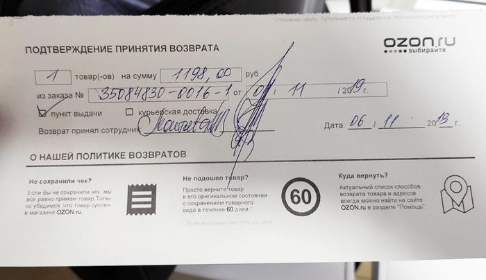 Если отойти от практики с Озон, то, как правило, подобные вопросы могут решиться в пользу покупателя без обращения в суд, несмотря, на, казалось бы, полное непонимание с первой линией обороны (продавец, колл-центр, менеджер по продажам).
