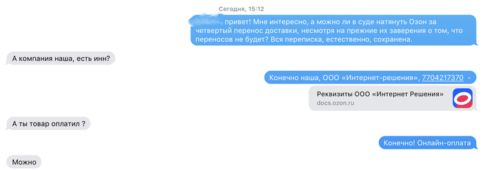 А вообще, впечатления от этого «Дня Сурка по-озоновски» самые грустные. Это ужас! Это самый крупный онлайн магазин в России! И это член этого грёбаного АКИТ, из-за которого вводятся таможенные пошлины на товары из-за границы. Якобы для защиты местного бизнеса. Какой защиты? Какого бизнеса? Эти упыри не могут ни обеспечить нормальный сервис, ни нормальных цен. Они даже доставку нормально сделать не могут и откровенно врут и врут! Зачем их защищать? Какие ценности защищают сами наши компании? Обманывают своих сотрудников по зарплате? Недоплачивают за бензин? Сокращают персонал? Занимаются "оптимизацией"?