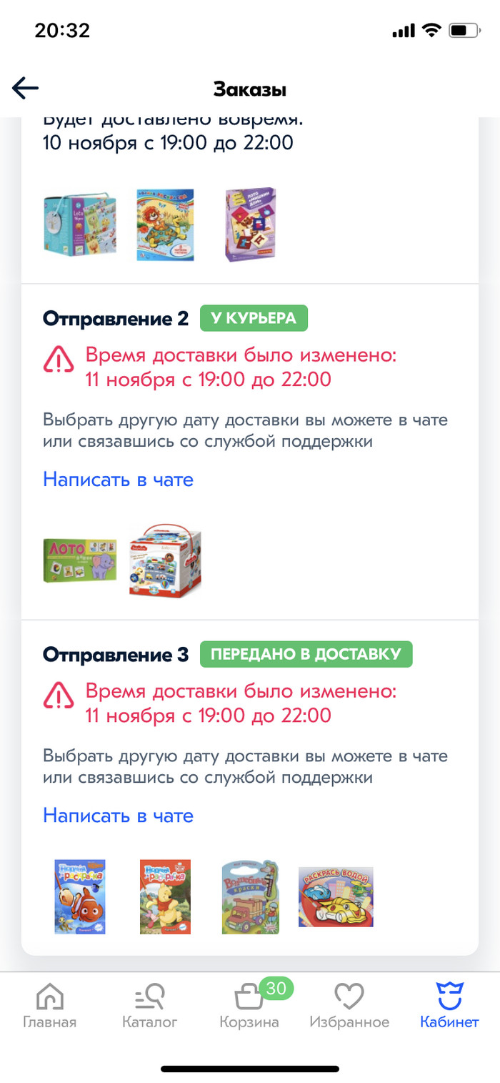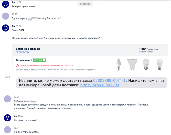 ОК, думаю я, наслышанный о проблемах с доставкой, хоть часть пусть привезут что есть и лампочки. Дополнительно решил зайти в чат, утвердить новую дату доставки и строго с ними поговорить: