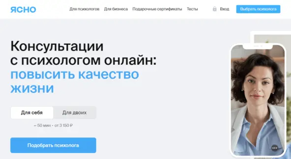 ЯСНО — это онлайн сервис, где можно подобрать психолога и сразу записаться на сессии. В базе более 4 300 специалистов, но проходят отбор лишь 9% кандидатов. У психологов — профильное образование и опыт минимум три года, а у многих — около семи лет, плюс супервизии. Сеансы проходят через встроенную платформу — видео, оплата, расписание — всё внутри. На сервисе уже более 330 000 клиентов и свыше 3,7 млн проведённых консультаций.
