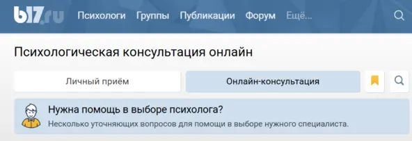 Алгоритм и служба поддержки помогают сформулировать запрос и подобрать подходящего психолога.