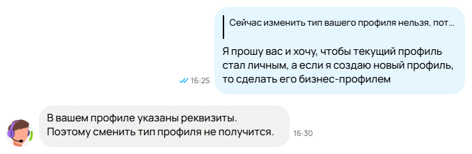 Мне предложили завести новый профиль на другой номер телефона и связать эти профили. Я попросил оставить мне этот профиль для личных вещей, а профиль про - вынести на отдельный аккаунт. То есть совершить обратное действие. Мне сказали, что такое невозможно.