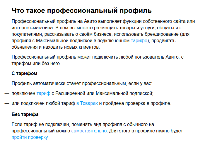 Меня не предупреждали, что если личный профиль на Авито стал профессиональным, это означает, что вы перешли на бизнес-аккаунт Авито Pro. Это происходит автоматически, если у вас подключен тариф с расширенной или максимальной подпиской, либо если вы подключили любой тариф в разделе "Товары" и прошли проверку в профиле.