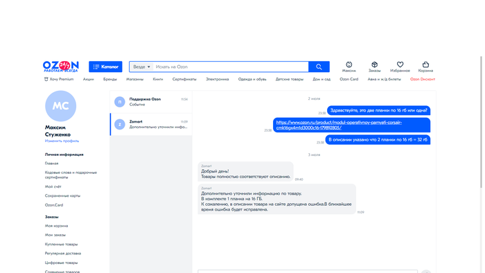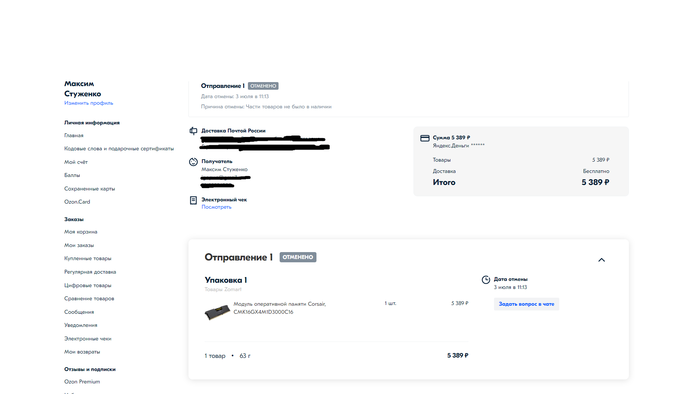 Но по решил поступить по совести. Рассказал, что деньги уже вернулись на карту, но с радостью бы принял эту сумму как дополнительную компенсацию за 2 сорванных заказа и вообще все что произошло. Деньги на озон счету оставил не тронутыми.