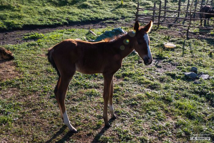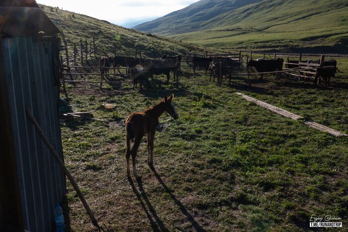 Ибрагим рассказал про жеребенка. Он встретил его высоко в горах, обессиленного. Неизвестно как он отбился от табуна, но без помощи он бы точно не выжил. Пастух принёс его к себе на пастбище, выкормил, и жеребёнок привязался. Не уходит никуда, следует за Ибрагимом повсюду. Но у пастуха нет лошадей, только коровы. Он планирует подарить его знакомым пастухам. А мне казалось. что все лошади в горах уже одомашнены и кому то принадлежат. Вот идёшь по тропе и к тебе целый табун подходит, присматриваются и бегут дальше. Без подков, без клейма или краски. Удивительно!