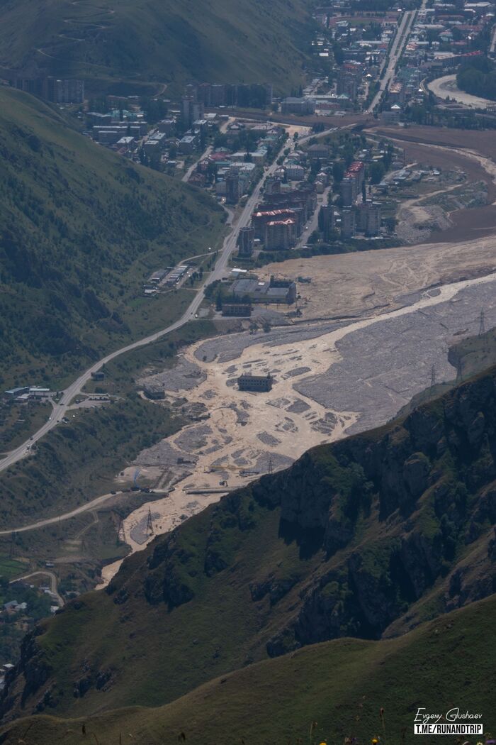 Ещё не видя самого городка, в телегу мне прилетело видео из чата путешественников по Кавказской тропе, что в городе день назад сошёл сель, всё это дело было снято на видео с нескольких ракурсов. Дорога в город была перекрыта. Это сразу же объяснило причину задержки посылки. Пришлось и маршрут менять на ходу, а посылку отменять и искать место нового получения, которое оказалось вовсе не близко.