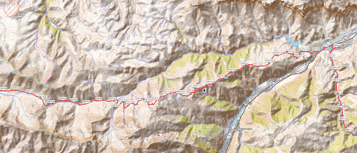 С перевала был виден Тырныауз. У меня был план зайти в него, ведь туда в Озон я собрал себе небольшую посылку с ништяками. Но посылка сорвалась и улетела по выдаче на месяц позже, так же и накрылось мое посещение этого городка.