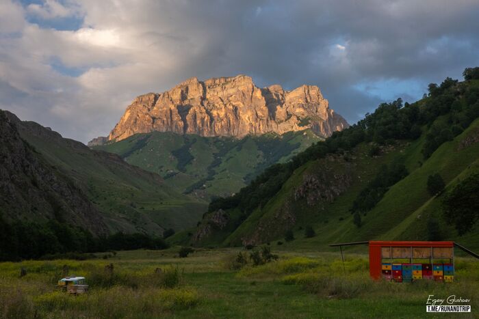 В нескольких километрах от поселка я остановился на очень живописном месте. Здесь текла небольшая река- источник питьевой воды, если покипятить и на поляне стоял пасечник. Он предложил оставаться рядом, так безопаснее и есть вода, ну и конечно мёд! К этому моменту у меня ещё не все запасы от пастуха Ибрагима закончились.