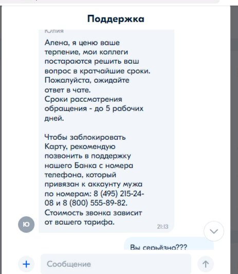 Кстати, когда личный кабинет взломали, муж оставил отзыв на сайте банки.ру - ну это чтобы вы поняли, что мы действительно уже все поперепробывали!