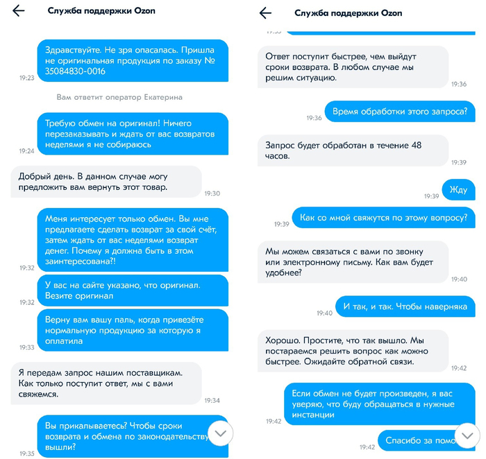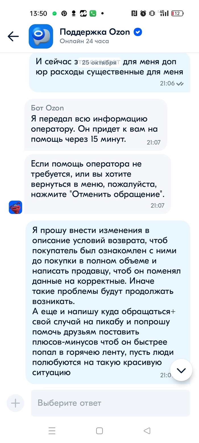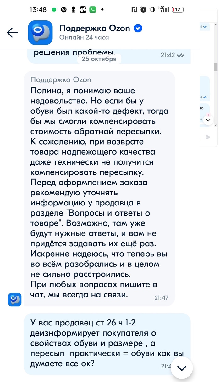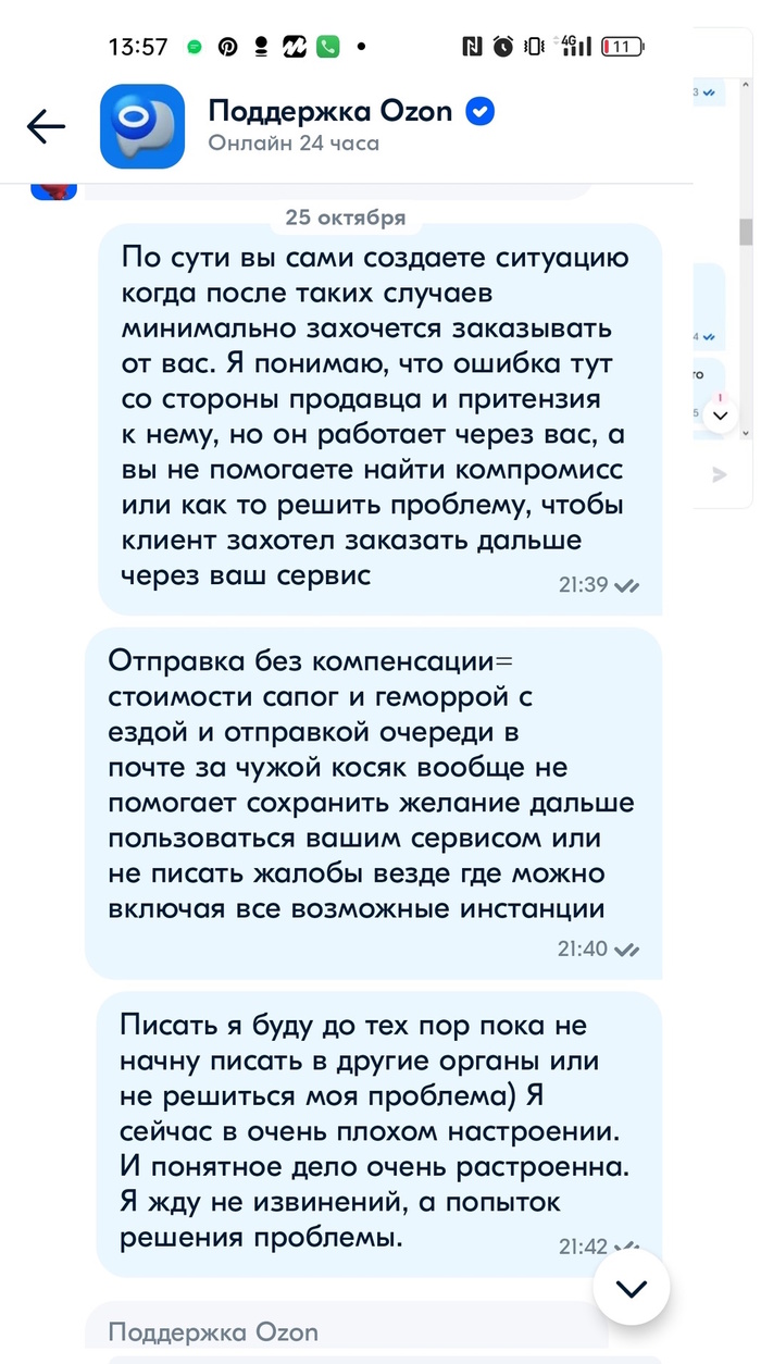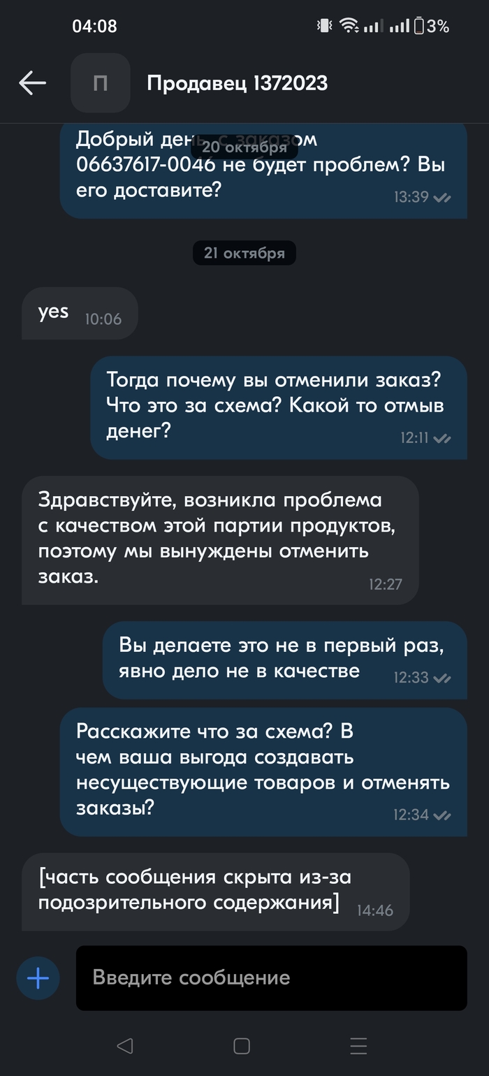 Сам же OZON, не проводя проверки продавцов и не помогая разобраться, ещё и скрывает тексты сообщений.